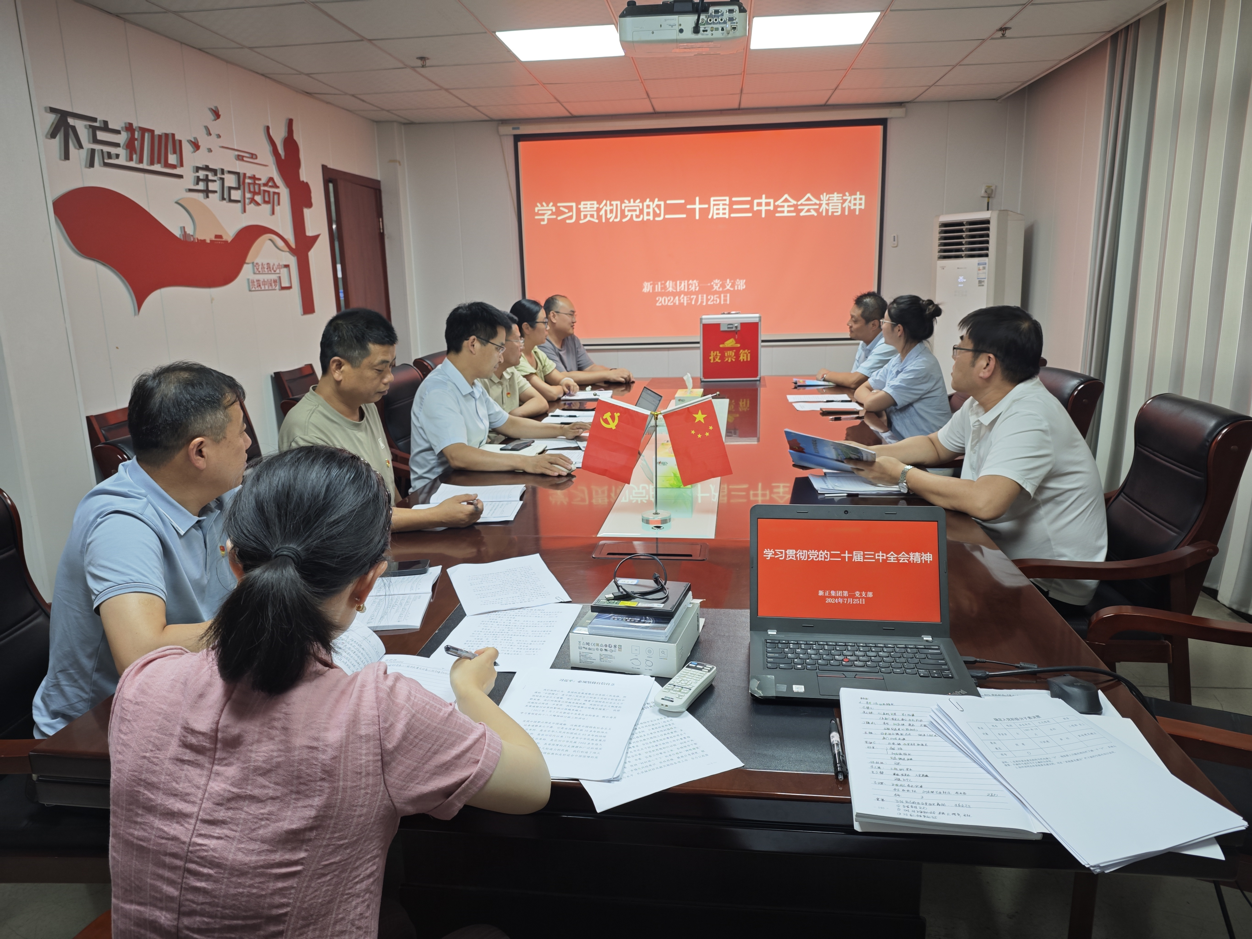 7月25日,新正集團第一黨支部黃智主持召開第一黨支部黨員大會,專題傳達學習貫徹黨的二十屆三中全會精神,聽取學習宣傳貫徹黨的二十屆三中全會精神工作安排匯報。